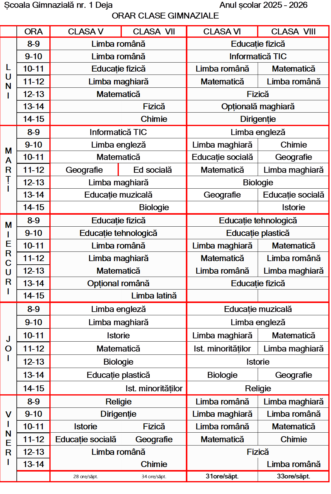 Clase gimnaziale - Felsős osztályok (V-VIII)